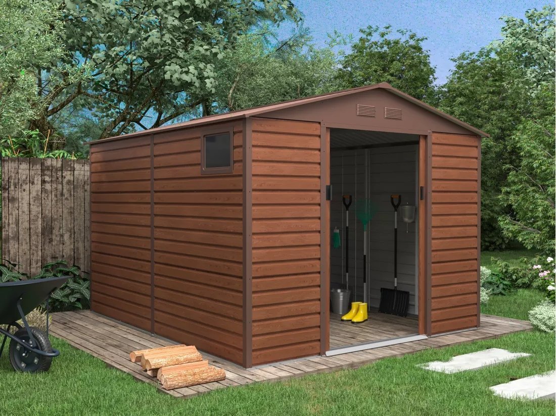 Nuestro cobertizo metálico ADELMO es ideal para guardar sus herramientas, muebles de jardín, bicicletas… ¡y todo lo que se le ocurra! Su acabado imitación madera le permitirá integrarse armoniosamente en su jardín, aportándole un toque moderno y elegante.