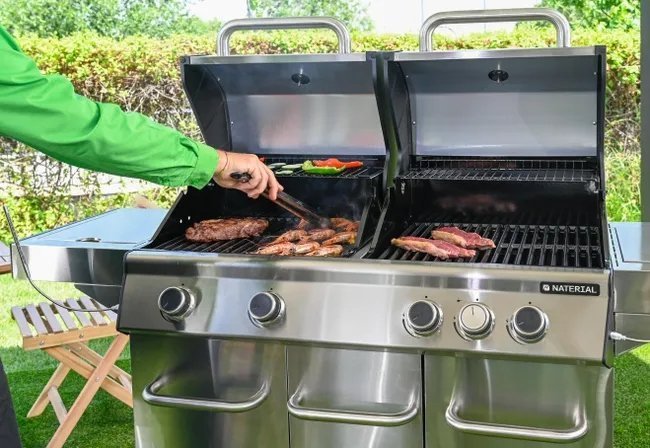 Barbacoa de gas NATERIAL Hudson con 4 quemadores y una potencia combinada de 17 kW de potencia profesional con un diseño moderno que ofrece una experiencia de cocina al aire libre. Los quemadores superiores de alto rendimiento garantizan una cocción rápida y uniforme y un control eficaz y preciso de la temperatura, lo que permite preparar carnes verdes, pescados marinos y otros alimentos con resultados uniformes. Sistema de encendido rápido y seguro, superficie de cocción ampliada para cocinar varios alimentos al mismo tiempo, estructura de materiales duraderos resistentes a la corrosión, portátil y fácil de transportar, ideal para parrilladas familiares, reuniones sociales, acampadas, picnics, viajes y eventos al aire libre, eficiencia energética optimizada, fácil de montar, compatible con accesorios adicionales, versatilidad máxima, flexibilidad para personalizar el diseño de la barbacoa, diseño elegante, funcionalidad completa, rendimiento superior, experiencia de asado profesional, calidad confiable, disfrute de barbacoas al aire libre sin preocupaciones, comodidad y practicidad para usuarios frecuentes, resultados consistentes y sabor óptimo en cada preparación.